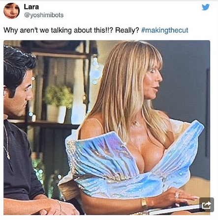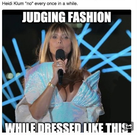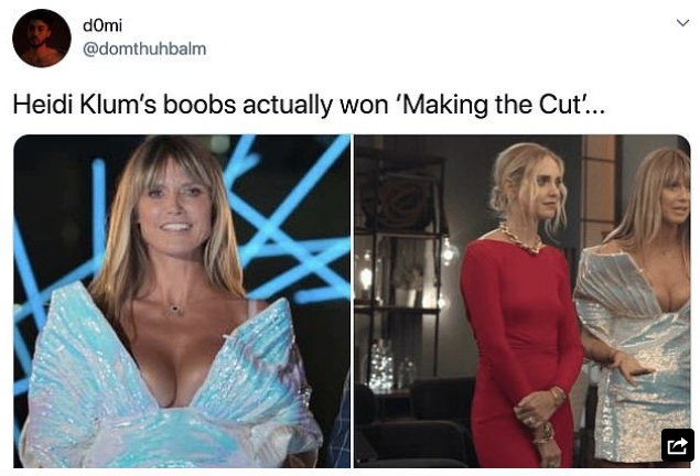 Так, на днях Клум появилась на финале шоу о моде "Подиум", в котором была среди членов жюри. Для выхода знаменитость выбрала соблазнительное блестящее мини-платье с довольно глубоким декольте, которые едва прикрывало ее пышную грудь. Примечательно, что в сети в пух и прах раскритиковали такой наряд и назвали его "настоящей безвкусицей". Кроме того, зрители шоу принялись создавать забавные мемы, в которых посмеялись над платьем Хайди.