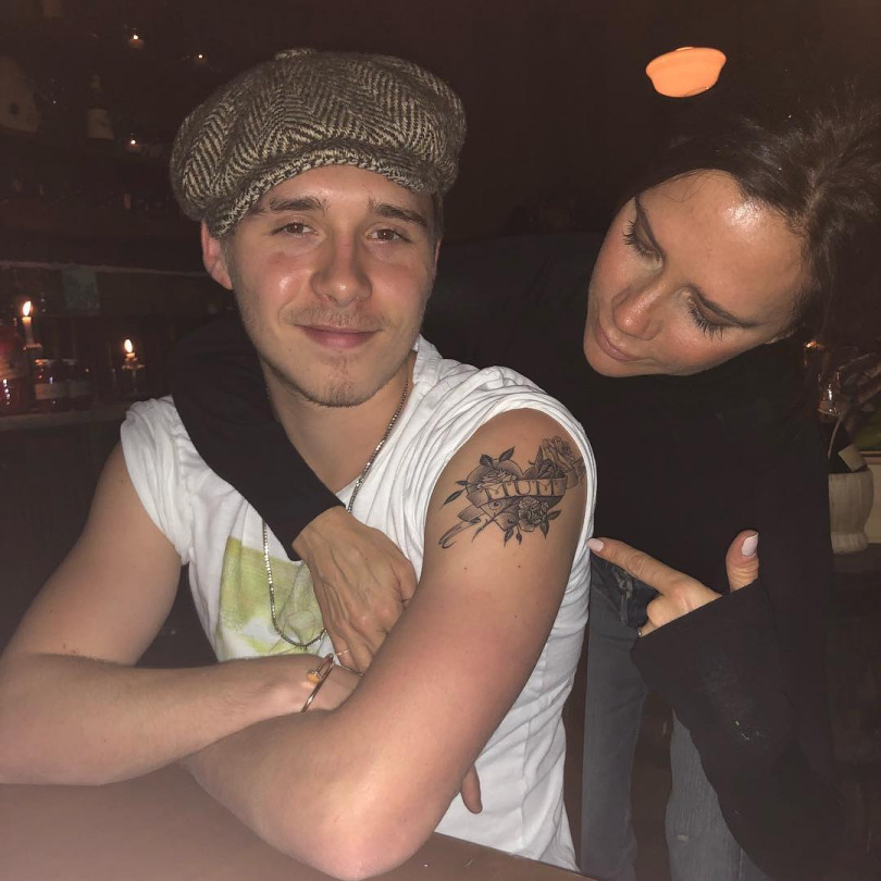 К слову, о новом тату мы узнали благодаря фотографии в личном микроблоге Виктории Бекхэм, на которой она позирует с сыном и указывает на его новое тату.