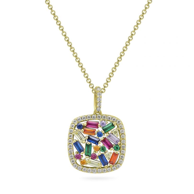 Різнобарвне і трендове кольє NATKINA зі срібла з жовтим родієм, оздоблене розсипом кольорових фіанітів.