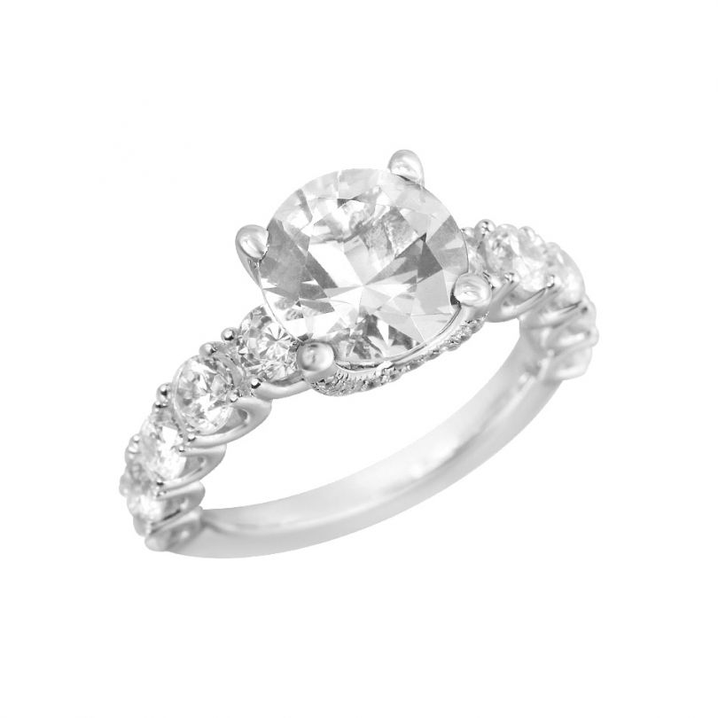 Класична і вишукана срібна каблучка NATKINA, оздоблена американськими фіанітами ручної огранки.