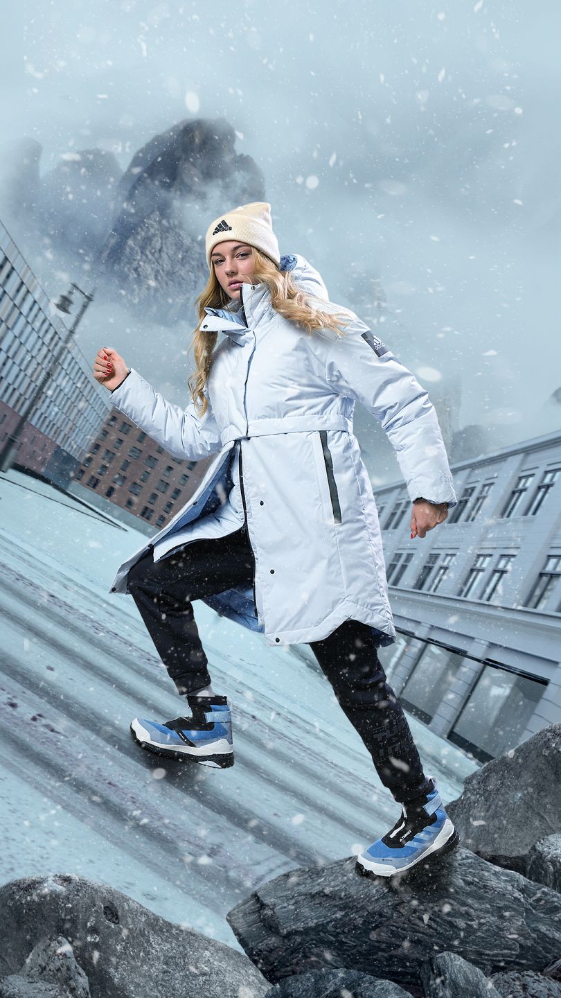 Зимова колекція adidas інтерпретує елементи спортивного екіпірування у міському стилі. У лінійці представлені універсальні силуети для холодної погоди: утеплена парка MYSHELTER COLD.RDY та пуховик Traveer COLD.RDY, а також черевики для хайкінгу Terrex Free Hiker COLD.RDY.