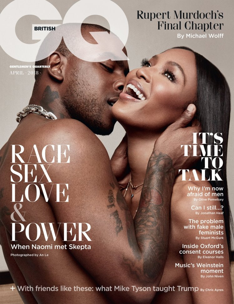 Обложку для GQ многие уже назвали одной из самых провокационных и ярких. На снимке Кэмпбелл позирует топлес в объятиях 35-летнего рэпера Skepta. Казалось бы, откровенные фотосессии не в новинку для супермодели, но изюминка съемки в том, что хип-хоп звезда является новым избранником Наоми. О романе знаменитостей заговорили несколько месяцев назад, и страстная фотосессия для GQ лишь стала подтверждением слухов.