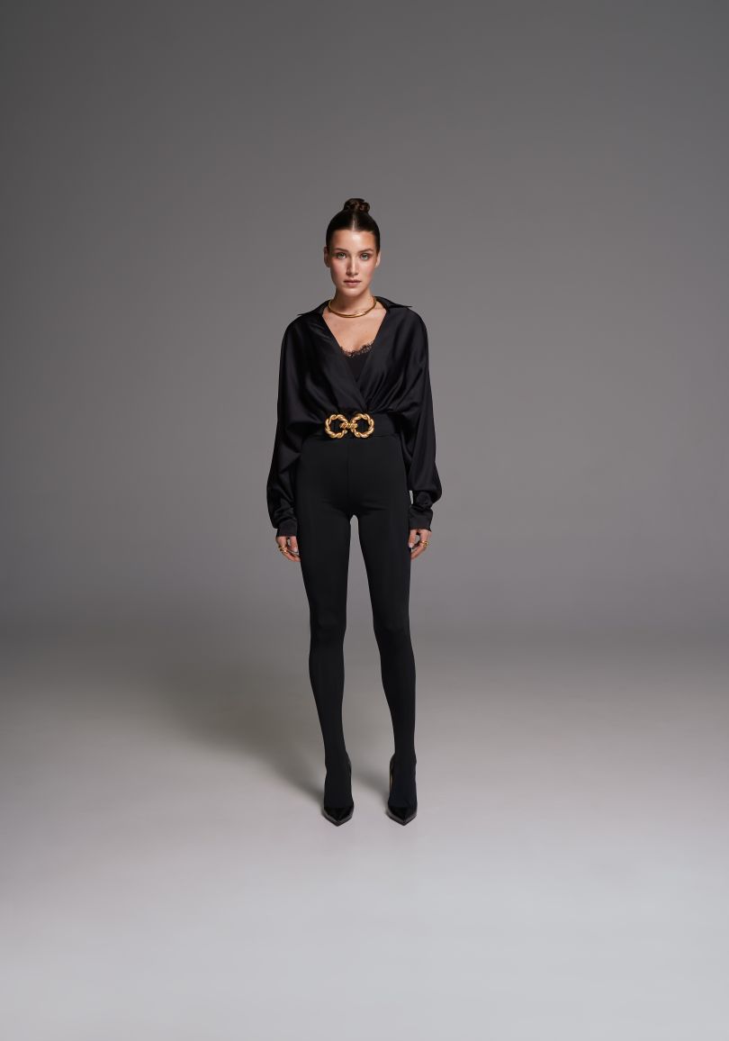 - 5. Чтобы выглядеть круто и стильно, надевая трендовые леггинсы, нужно их сочетать с рубашками свободного кроя и не забывать об аксессуарах.