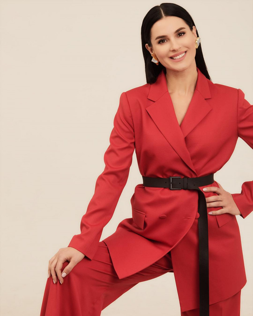 Так, на днях ведущая опубликовала в личном микроблоге снимок, на котором позирует в ярком красном костюме. Свой эффектный образ Маша дополнила черным поясом и объемными серьгами.