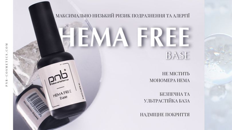 HEMA FREE Base PNB 一 это прозрачная база с инновационным составом и уникальными свойствами. Формула отличается отсутствием мономера HEMA, что позволяет свести к минимуму риск появления аллергических реакций, раздражения и зуда. Это настоящее "спасение" для аллергиков. Более того, база не нагревается и не доставляет неприятных ощущений во время полимеризации.