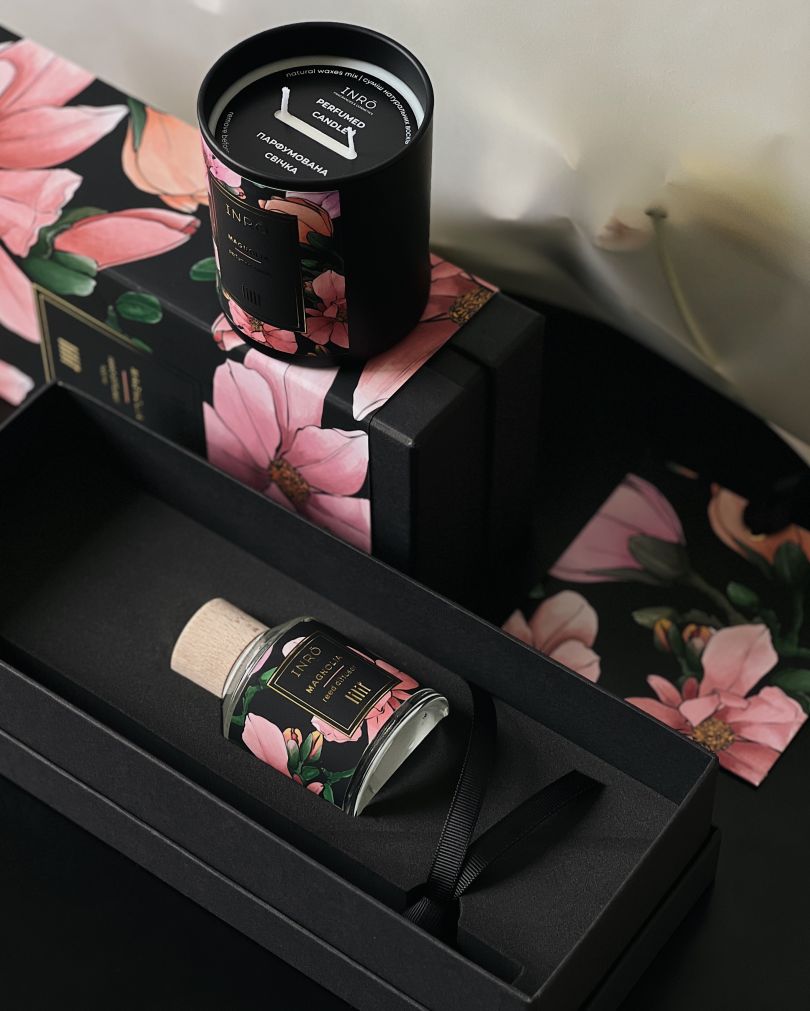 Парфюмерно-косметический бренд INRO объединился с украинской художницей Лилит Саркисян в благотворительной коллаборации, чтобы помочь восстановить цветочную коллекцию. Вместе они создали аромадифузоры и свечи, посвященные цветам, пострадавшим из-за военных действий. Главными ароматами стали экзотические плюмерии, магнолия, азалия и камелия. Именно эти растения в акварельной технике художница изобразила на упаковке.