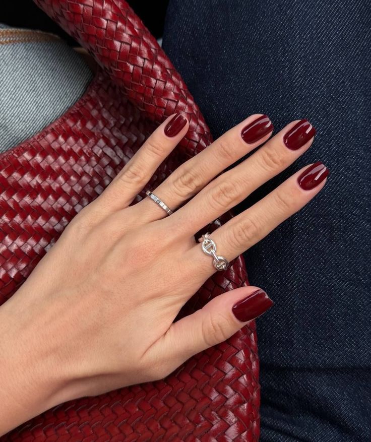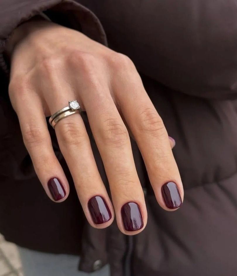 Бордовый маникюр имеет завершенный вид и не требует дополнения узорами или другим дизайном. Оттенок темной вишни — это про уверенность, страсть и эффектность, поэтому говорит о вас без слов.