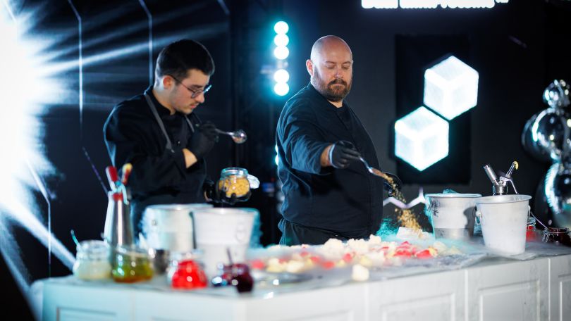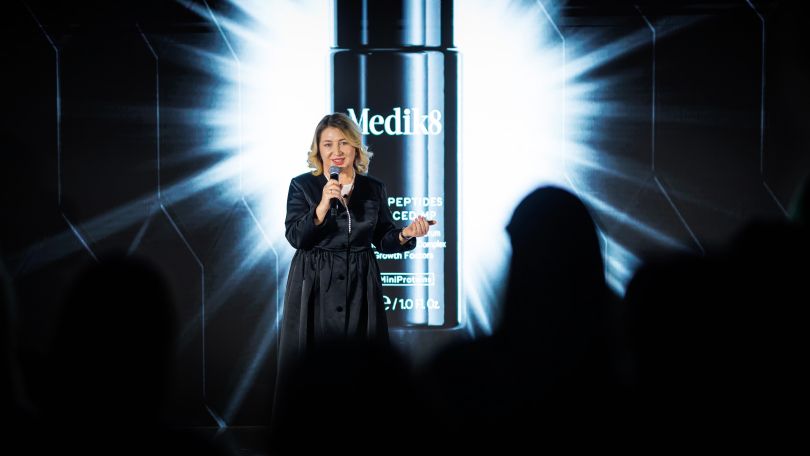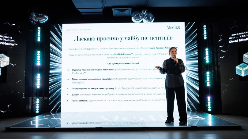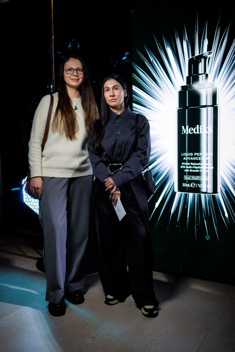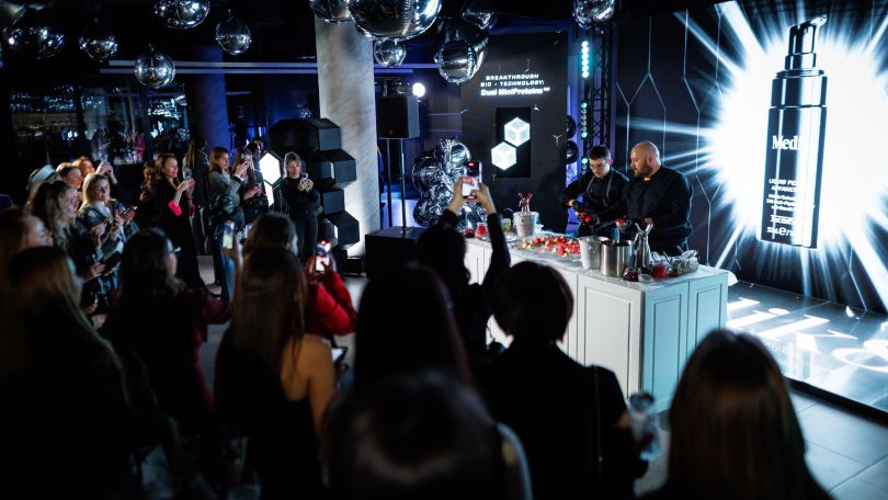 Официальная презентация Liquid Peptides Advanced MP состоялась в киевском ЦУМе, где команда Medik8 оформила зал в футуристическом стиле с акцентом на черные тона, уделив внимание каждой детали. Гостей угощали изысканными блюдами и эксклюзивными сортами чая. Кульминацией вечера стал кулинарный перформанс: шеф-повара прямо на глазах у зрителей приготовили эффектный десерт из мороженого и шоколада.