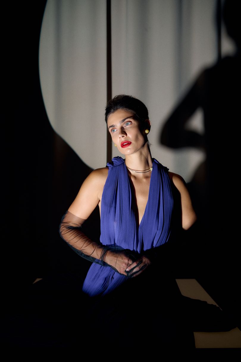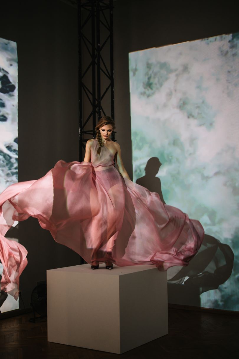Коллекция Sa Lumiere от J’amemme — это о силе и лёгкости, о женственности во всей её многогранности. Лёгкие ткани — шифон, органза, прозрачные фактуры и воздушные силуэты сочетались с драпировкой, которая добавляет скульптурности образам. Палитра: от нежных аквамариновых до глубокого фиолетового — всё это символизирует разные состояния — от спокойствия до вдохновения.