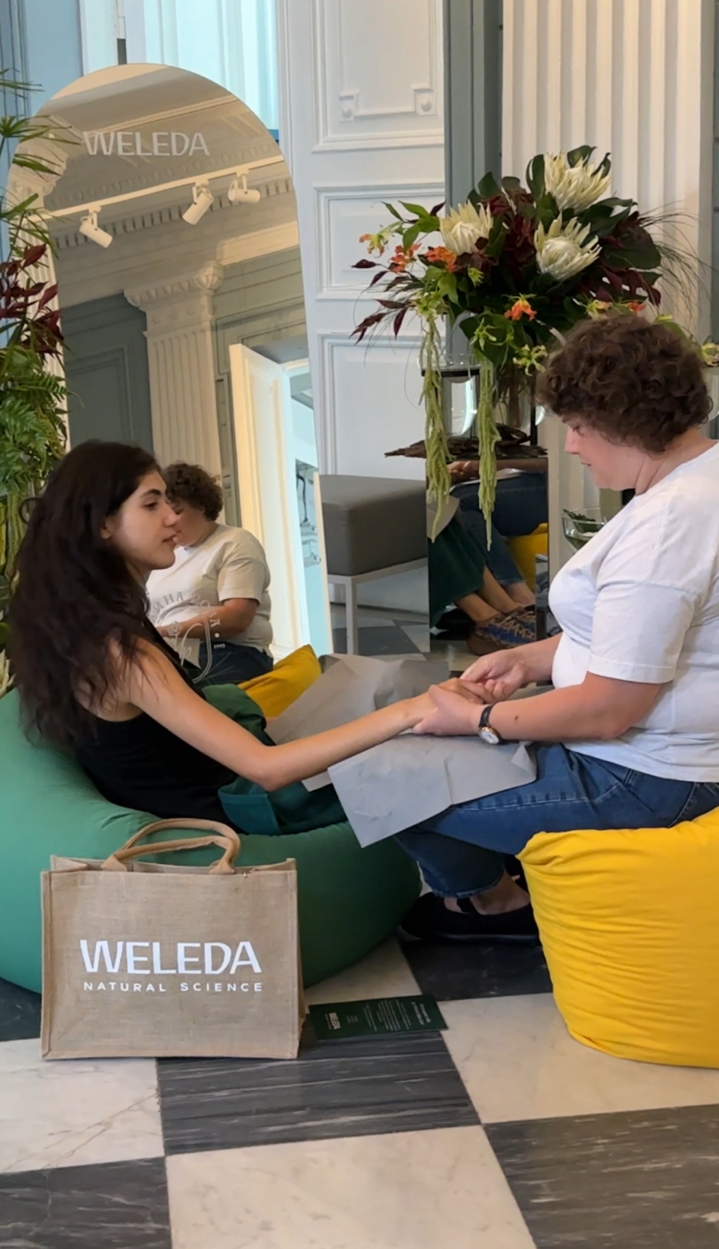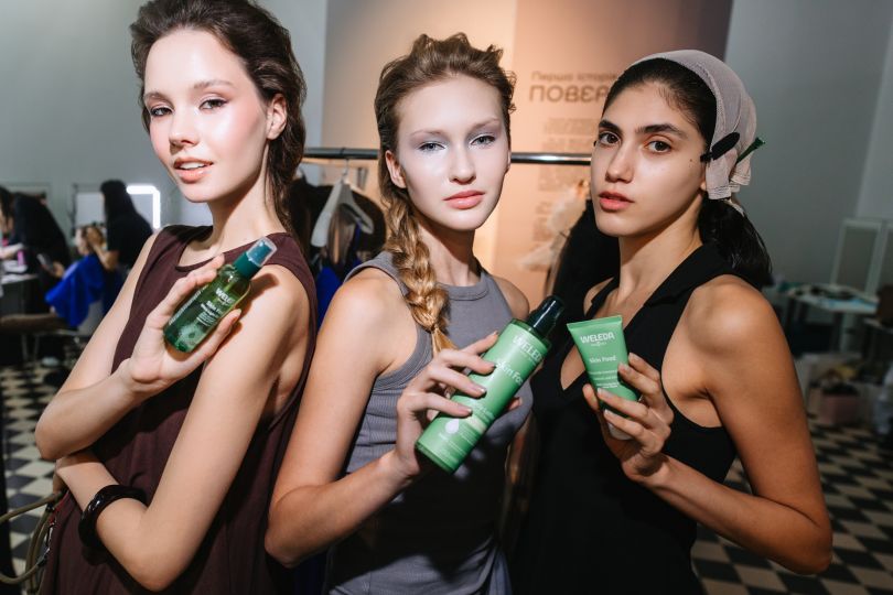 Одновременно Weleda обустроила за кулисами Hands Relax Zone — пространство, где модели могли отдохнуть и восстановиться. Массаж рук с кремами и маслами бренда стал маленьким ритуалом в разгар напряжённого графика и бессонных ночей. Эта идея оказалась настоящим открытием для backstage — зоны релакса не только сняли стресс, но и задали атмосферу заботы, которой так часто не хватает в мире моды.