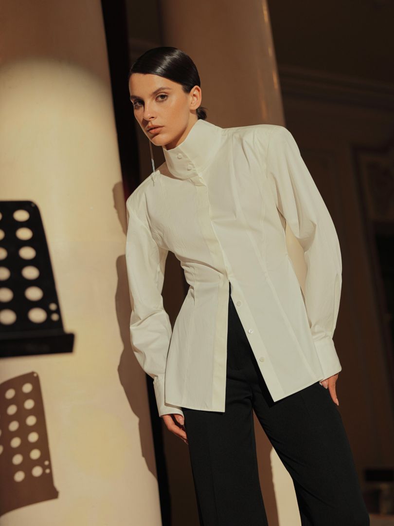 Центральное место в «Камертоне» занимают пальто — классический элемент ДНК бренда, выполненные из премиальных тканей с точным архитектурным кроем. Среди ключевых моделей также — структурированные жакеты с акцентированной талией, фактурная чёрная юбка, позволяющая создавать разные стилистические решения, и новинка сезона — динамичный топ с эффектом движения.