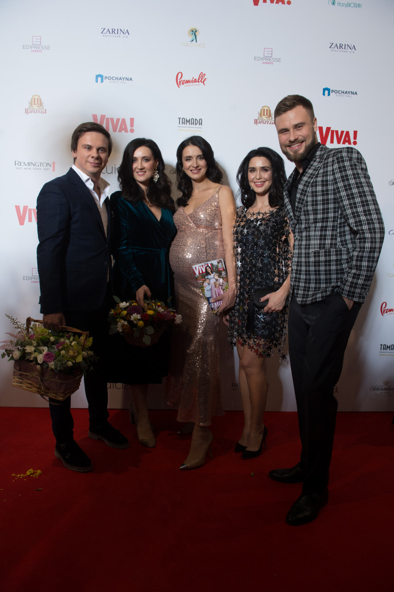 Сейчас телеведущая Валентина Хамайко находится на 8 месяце беременности и совсем скоро родит своему мужу четвертого ребенка. Недавно она стала героиней обложки нового выпуска журнала Viva!, снявшись в нежных и романтичных образах вместе с семьей, а вчера ведущая блистала на вечеринке в честь дня рождения Viva! На бал Валентина пришла в компании своего мужа Андрея Онистрата, а также их дочери. Для мероприятия телеведущая выбрала роскошное блестящее платье в пол по фигуре, которое подчеркнуло животик.