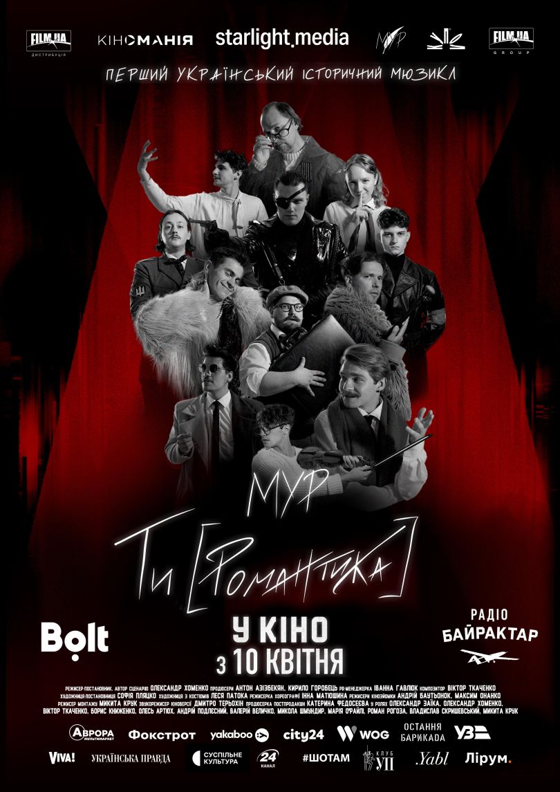 Проект МУР о мюзикле в кино: «У нас невероятная театральная культура: постановки Ивана Урывского, харьковские театры, наследие Курбаса и Кулиша... Но, к сожалению, все это может не сохраниться для истории, потому что у нас не принято профессионально записывать спектакли. Мы, МУР, хотим это изменить. 10 апреля впервые в истории украинский спектакль выйдет в кино. „Ты [Романтика]“ ждет тебя. Приходи и стань частью перемен».