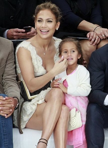 Дженнифер Лопес максимально старается оградить своих детей, Макса и Эмму, от внимания общественности. Фото ее карапузов, которые появляются в прессе, чаще всего авторства папарацци. И вот на днях, Джен решила взять пример с Виктории Бекхэм и привела свою малышку Эмму на модный показ Chanel. Выглядели и мама дочь просто потрясающе. Певица была сама элегантность в коротеньком кружевном платьице и изящных туфельках.