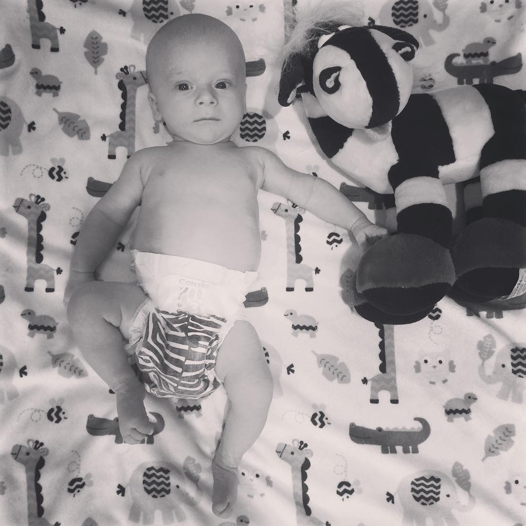 На черно-белом снимке маленький Эней позирует в подгузниках, внимательно смотря в камеру. "Моя маленькая зеброчка", – подписала фотографию с малышом Анастасия.