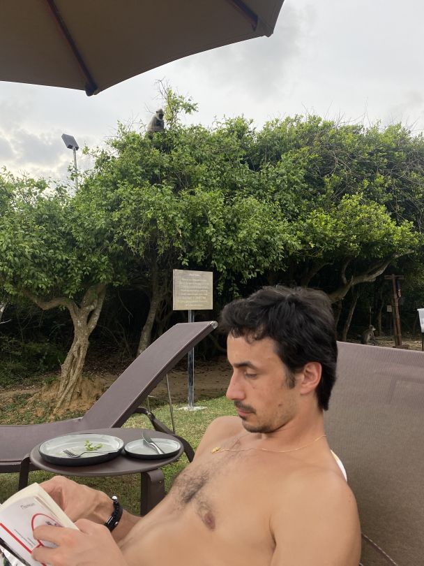 Александр Стоянов: Я бы сказал так — два разных отеля и два разных типа мышления. В южной стороне Шри-Ланки выбрали отель Cape Weligama Resort, который подойдет для пляжного релакса и умиротворения. Плюс нам его рекомендовали из-за высокой кухни. Второй отель Wild Coast Tented Lodge для приключений в джунглях, не покидающего кровь адреналина и возможности вкусить жизнь во всех ее проявлениях. Второй отель находится в диком заповеднике Яла. Когда мы заезжали, нас сразу предупредили, что в любой момент могут позвонить и попросить не покидать территорию своего домика, который был в форме кокона, поскольку территория без ограждений для диких животных и туда часто приходят хищники. Например, три месяца назад приходил леопард. Такой тип отеля полностью погружает тебя в другую атмосферу. На ужин нас всегда сопровождал рейнджер, во время трапезы вокруг нас ставили огни, которые отпугивали животных. Мне было интересно пожить в таких условиях, тем более, что в целом все безопасно, профессионалы все контролируют. Но для Кати многие ситуации были стрессовыми. И если стаи обезьян, буйволов, кабанчиков ее особо не пугали, то встреча со змеей очень напугала. Я, к примеру, не боюсь ползающих, а Катя после всю ночь не спала и мне не давала. Постоянно просила проверить комнату, ей казалось, что где-то что-то могло притаиться.