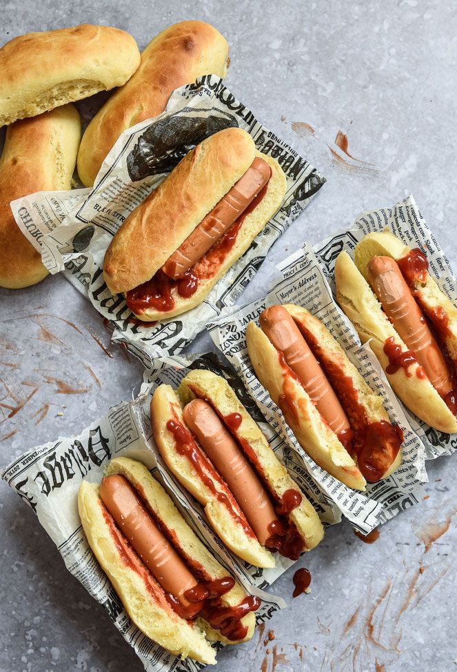 Хэллоуин обычно отмечают в кругу родных, друзей или близких, поэтому хорошей идеей будет угостить всех интересными блюдами. Нетипичным вариантом станут хот-доги, в которых сосиски будут «пальцами», завернутыми в тесто. А роль «крови» выполнит кетчуп. Такое блюдо соответствует тематике праздника, к тому же оно вкусное и простое.