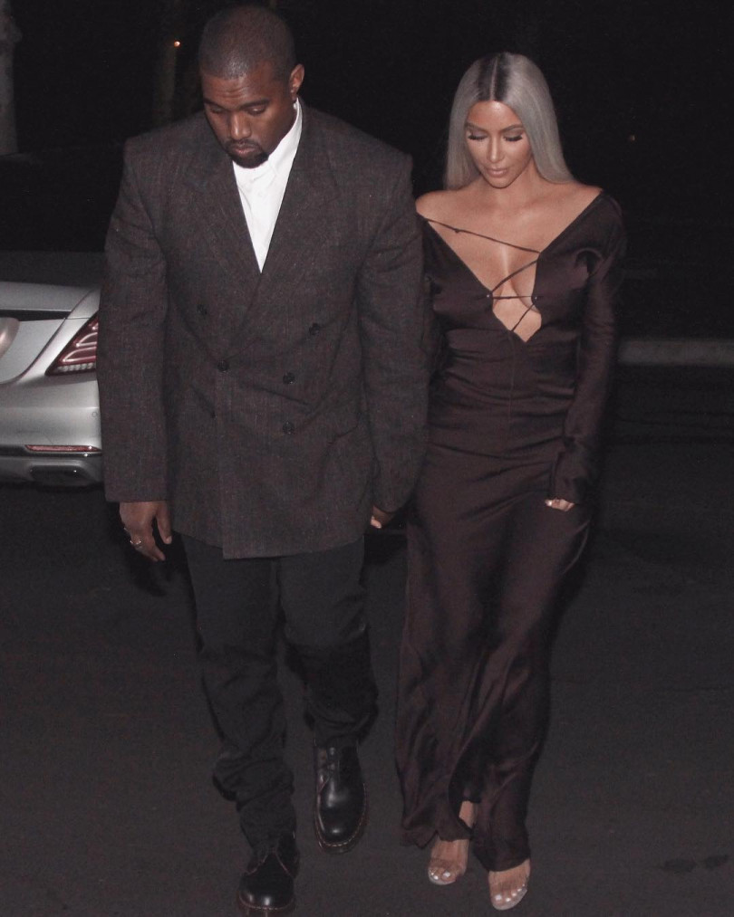 Теперь практически каждое фото с Канье поклонники Ким ждут с нетерпением. Именно потому новый кадр в Instagram Кардашьян собраз столько лайков. На фото супруги Уэст направляются на очередную вечеринку. Канье - в черных брюках и коричневом пиджаке, который гармонирует с платьем его жены. Отличный, стильный лук, не так ли?