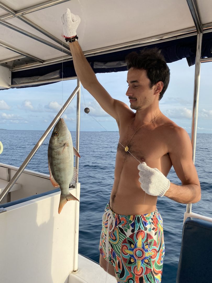 Александр Стоянов: «Я единственный, кто на этой рыбалке поймал рыбу. Одну нам приготовили на следующий день, а акулу мы отпустили. Впервые в жизни держал акулу в руках. Это, конечно, мощные создания и они по поведению очень отличаются от рыб. Ее нужно было держать очень крепко за жабры и хвост. Я поймал безобидный вид – рифовую акулу, они на людей не нападают, зарегистрированные случаи агрессии, в основном спровоцированы людьми. Такие акулы плавают возле нашего домика и чаще всего возле ресторана, это 200 метров от нашего домика, потому что сушеф их подкармливает рыбкой и там плавают габаритные по размеру акулы – 2-3 метра, но на людей они не нападают. Эта акула до последнего боролась за жизнь и делала это намного сильнее, чем другие рыбы. Так вышло, что она заглотила крючок, нам пришлось резать леску и вытаскивать крючок через другую сторону, чтобы ее спасти. Если бы другие рыбы столько пробыли на суше, пока их спасают, не факт, что оклемались бы, а эта, как только попала в воду, мигом уплыла».