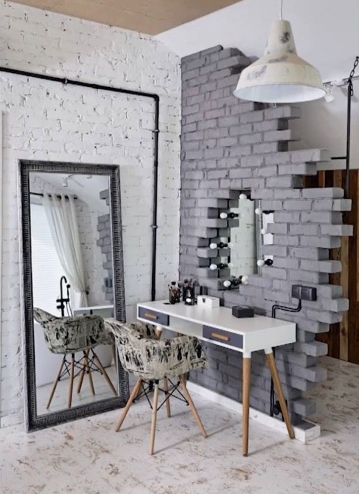 В соседней комнате рабочий кабинет Влада в стиле индастриал с яркими акцентами на стенах.