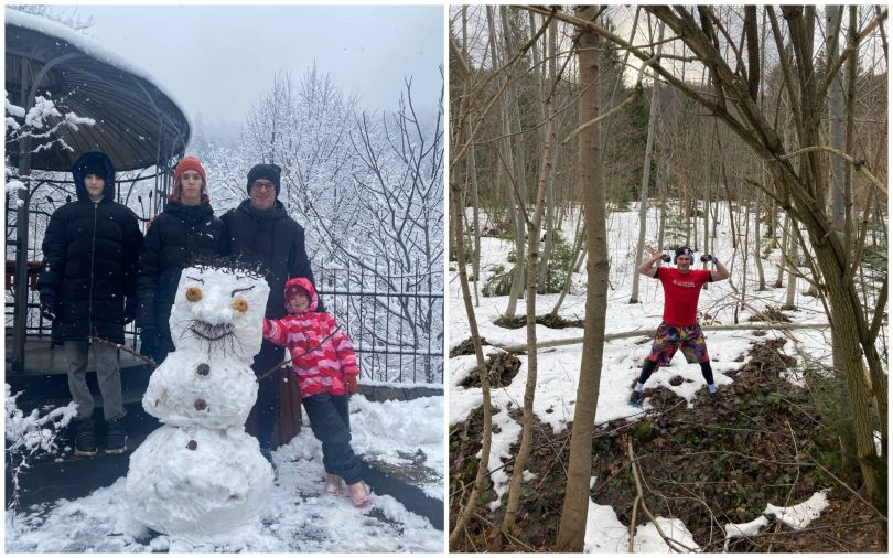 Подружжя багато часу проводить з дітьми — вони катаються на санчатах, ліплять снігову бабу, а цього разу зліпили гуцула з вусами. «Люди в Інстаграмі сказали, що вийшов Зібров», — жартує співак.