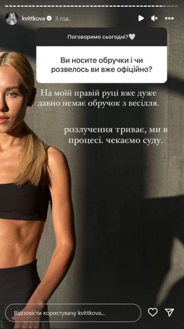 Отвечая на вопросы подписчиков, Даша Квиткова сообщила, что развод продолжается.
