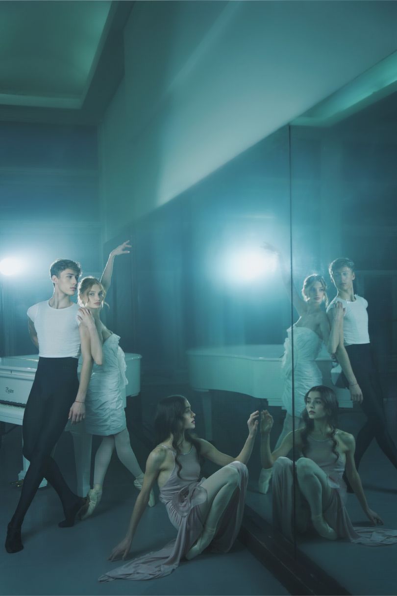 Ростислав Арно, фотограф: «Этот проект — больше чем фотосессия. Моя цель — передать не только техническое мастерство танцовщиков, но и их внутреннюю глубину. Белый рояль стал символом единства музыки и танца, а зеркала — отражением бесконечного стремления к идеалу».