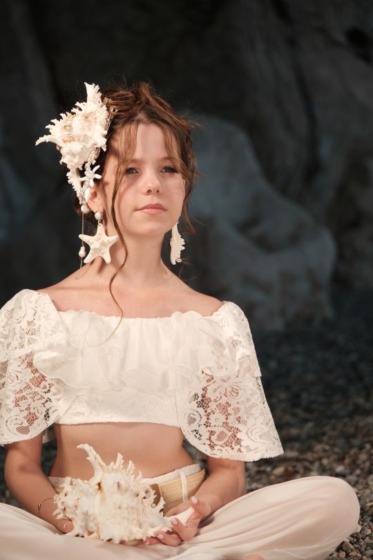 В кадре было задействовано более десяти образов, все из которых создала мама юной артистки и владелица бренда Noble Shine Дарина Гинку. Костюмы выполнены в стиле boho luxe, который идеально подчеркнул замысел и основную идею видео.