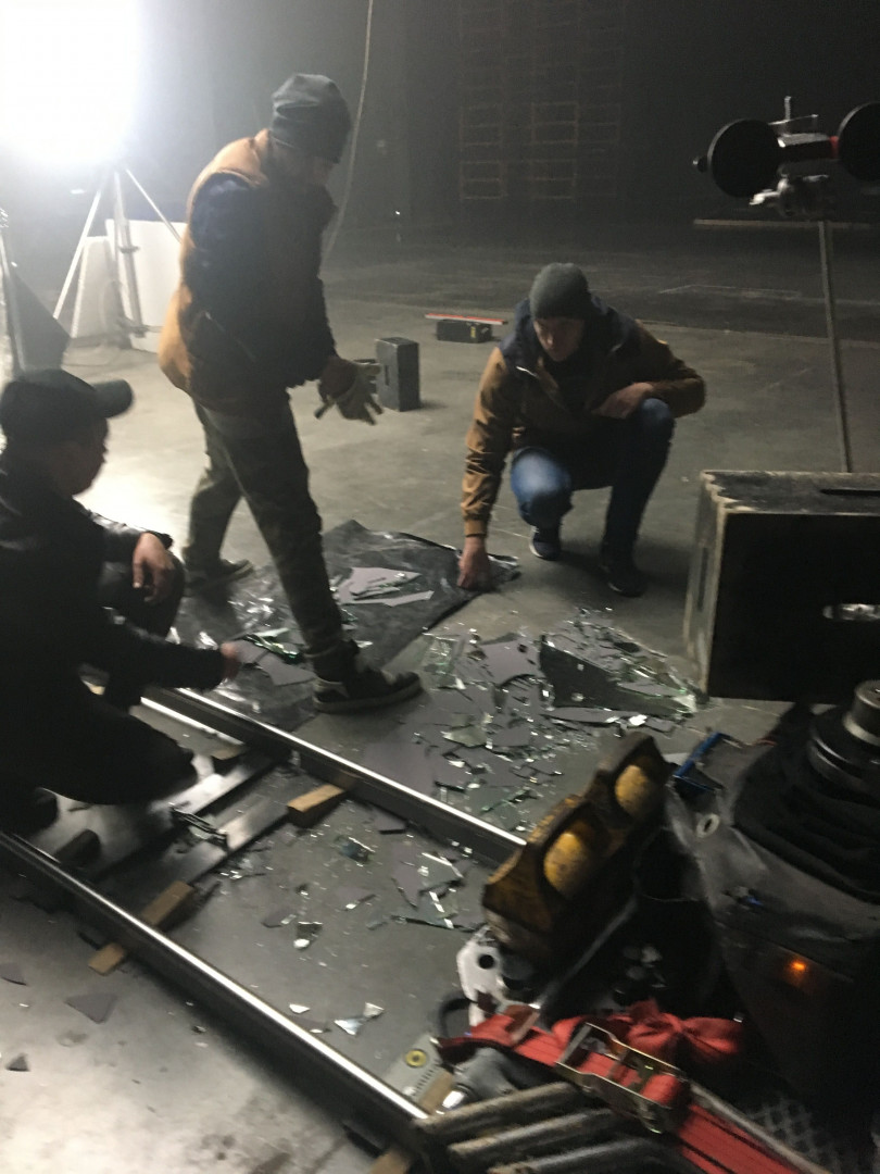 Во время съемок одной из первых сцен стекло, которое отражало изображение артиста, закрепленное на специальном приборе, выскользнуло и разбилось вдребезги! Первой фразой, которая прозвучала после тишины, в которой никто не смог проронить и слова, стала «Это знак! Точно счастливый» из уст самого Бабкина.