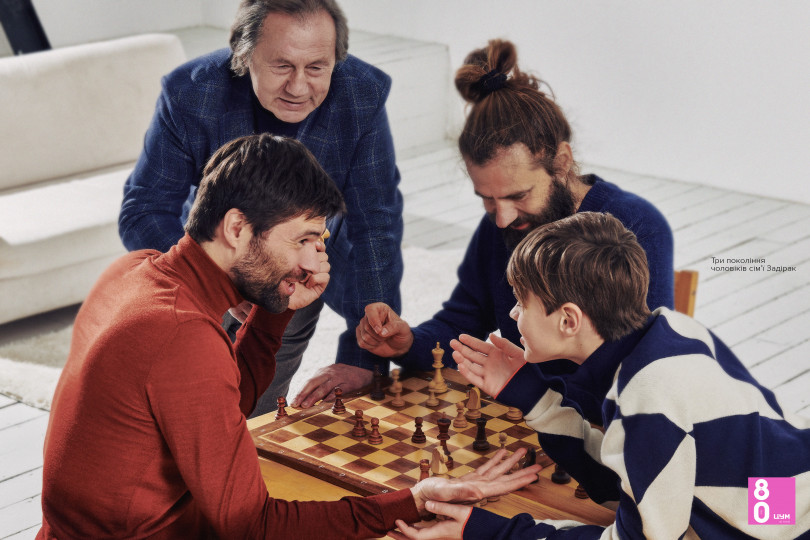 Народная артистка Ада Роговцева в компании своей дочери, режиссера Екатерины Степанковой, и внучки Дарьи, чемпионка мира по подтягиванию Анастасия Васильченко, внучка Софии Ротару модель София Евдокименко, художница Оксана Левченя со своим сыном Максимилианом Константиновским, владелец сети кофеен ONE LOVE coffee Владимир Задирака со своим отцом, братом и племянником, исполнительный директор отельного комплекса Bursa Kyiv Василий Гроголь, украинская актриса Варвара Лущик, модели Тамара Деркач и Галина Герасимова стали героями съемки.