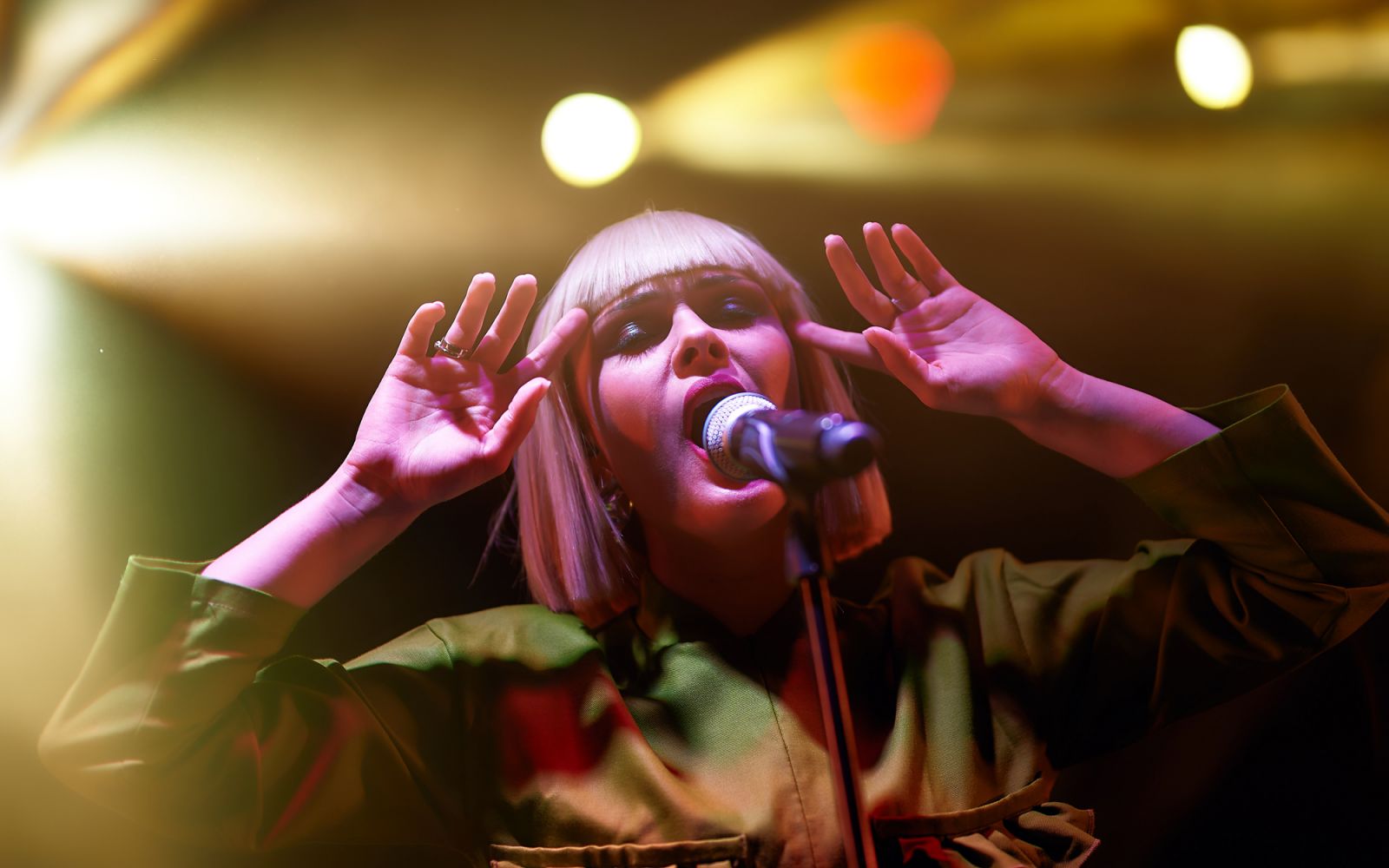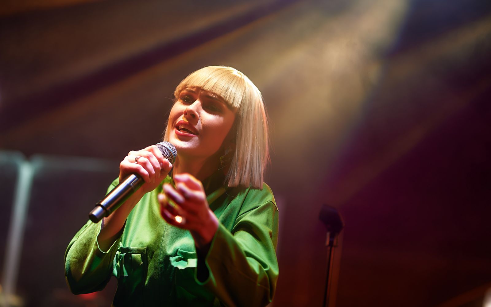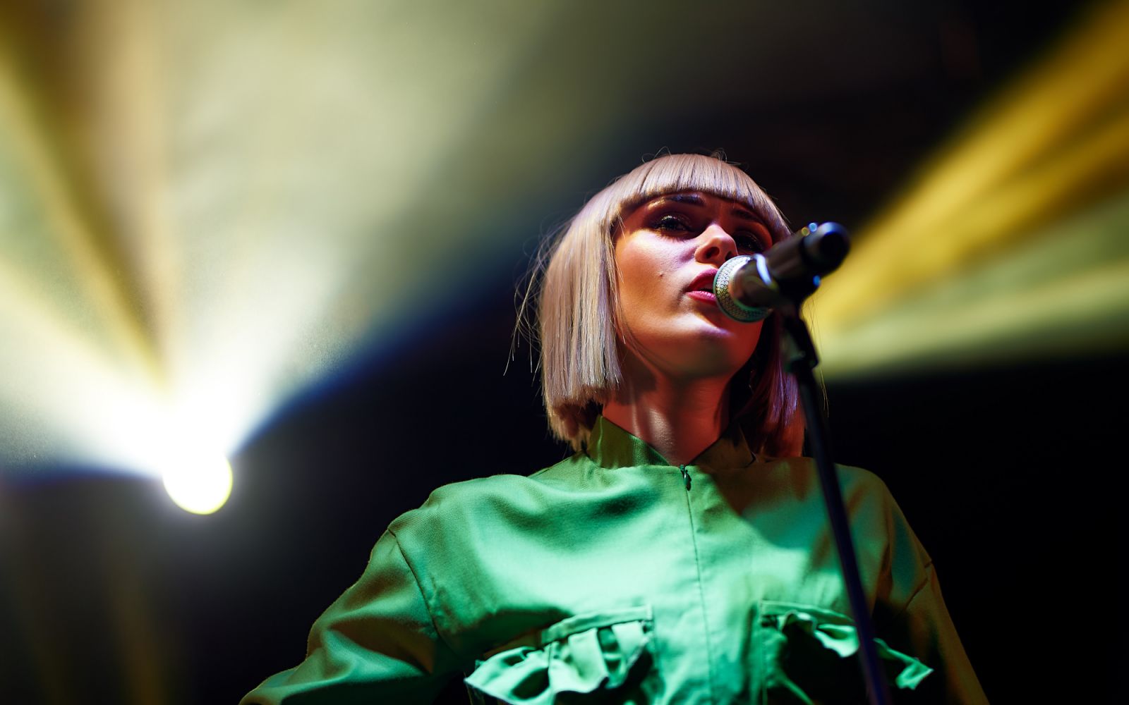 Фронтвумен The Hardkiss Юлия Санина полностью соответствовала дресс-коду вечера и выбрала наряд зеленого цвета. В стильном комбинезоне, массивных ботинках на платформе, платиновом парике и с ярким мейк-апом певица выглядела как всегда эффектно и по-рокерски дерзко.