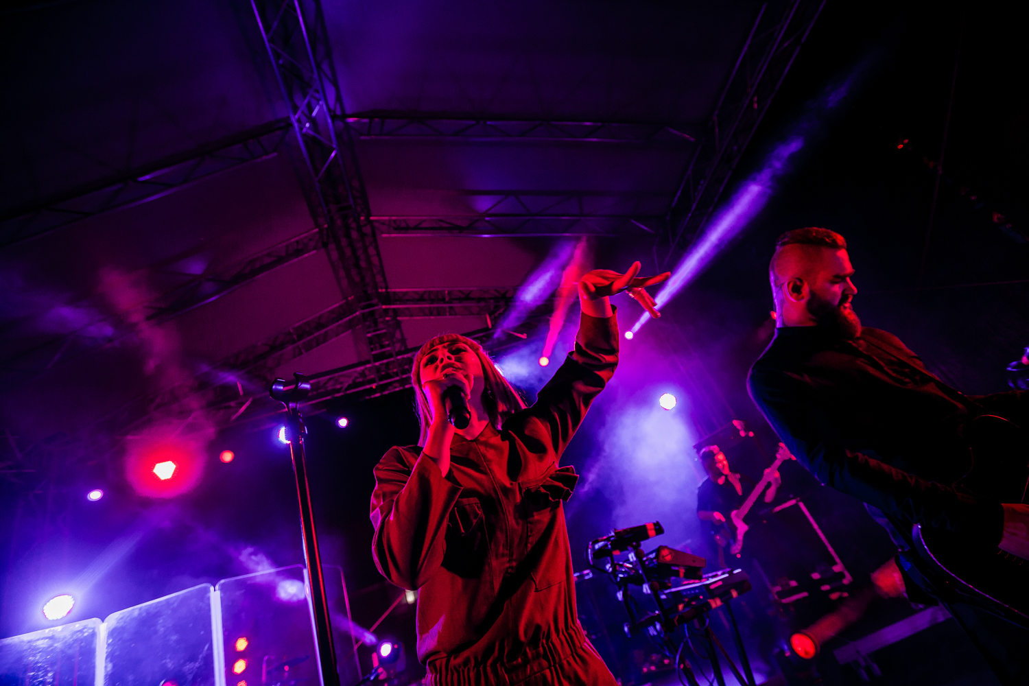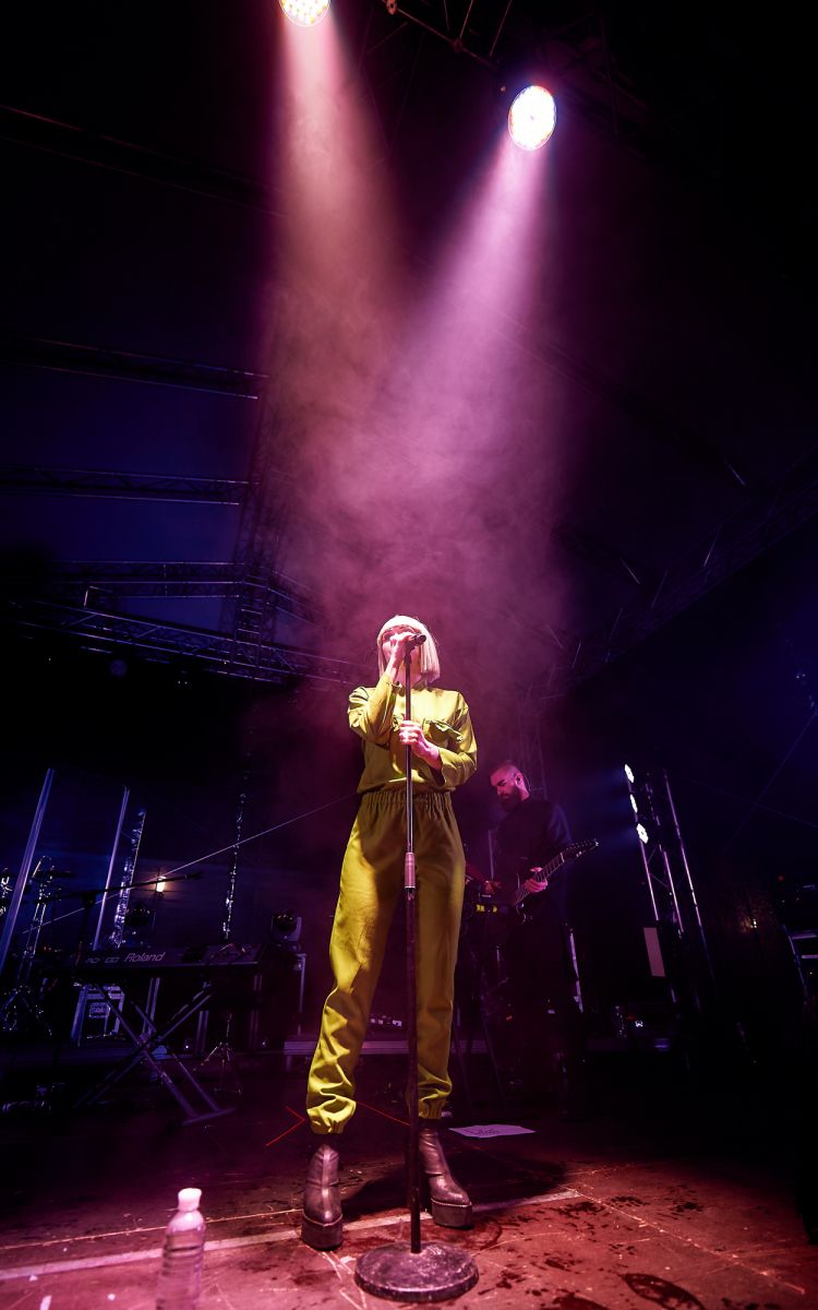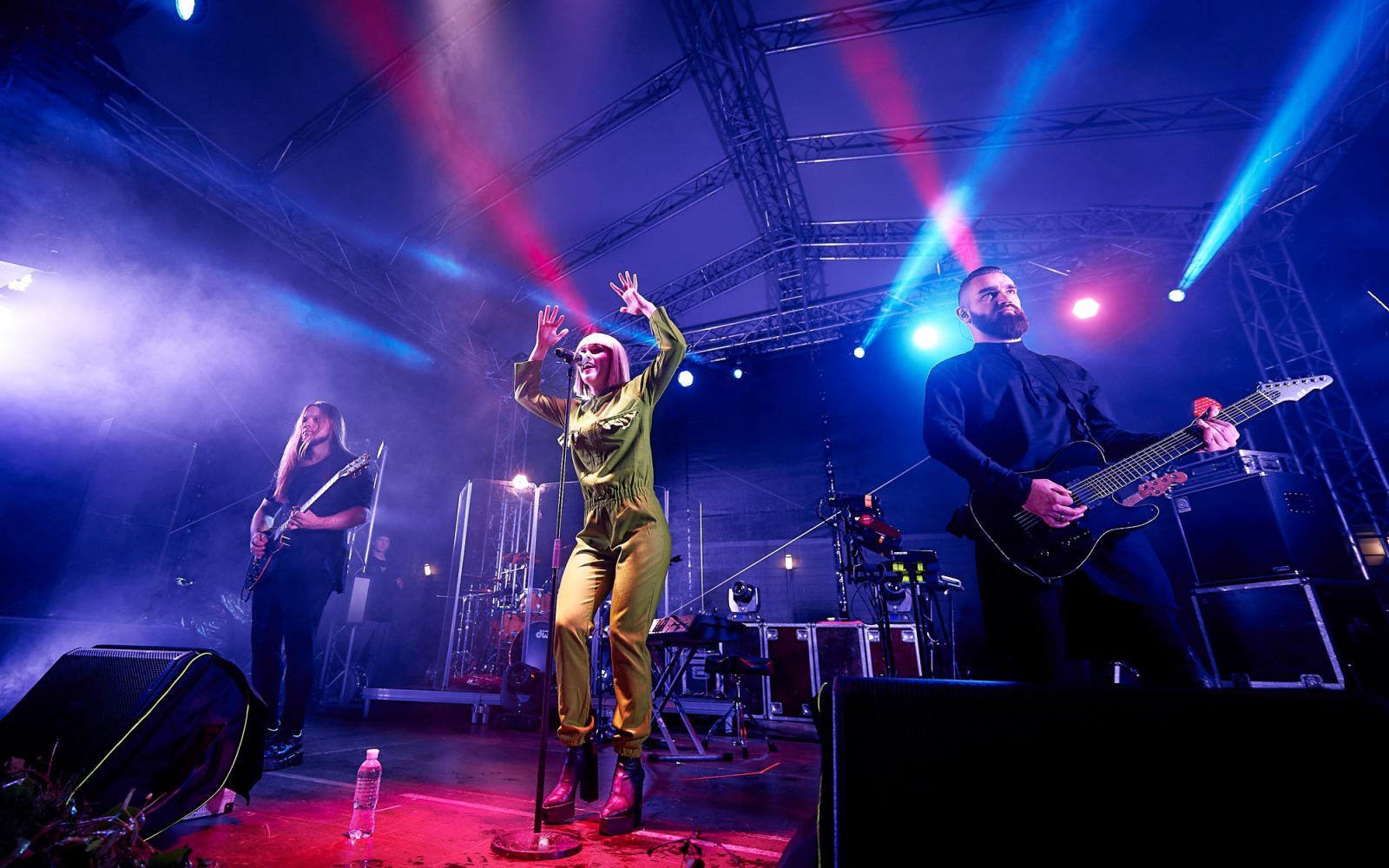 Фронтвумен The Hardkiss Юлия Санина полностью соответствовала дресс-коду вечера и выбрала наряд зеленого цвета. В стильном комбинезоне, массивных ботинках на платформе, платиновом парике и с ярким мейк-апом певица выглядела как всегда эффектно и по-рокерски дерзко.