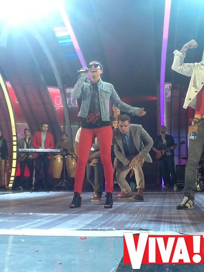 Красотка приехала в зал Дзинтари в стильных скинни-джинсах ярко-красного цвета, джинсовой куртке и черной футболке с кричащей надписью "BAD"! Известно, что Ани порадует поклонников исполнением своего знаменитого хита "Зажигай сердце".