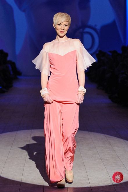 На главный подиум страны вышло 17 звезд украинского телевидения в лучших нарядах от отечественных дизайнеров. Открыла показ "Fashion в прямом эфире" неизменная ведущая новостей на канале 1+1 Алла Мазур, одетая в стильное платье от Ксении Киреевой. Далее на подиуме блистали красавицы: Юлия Бориско в костюме от Ларисы Лобановой, Маричка Падалко в платье от Ирины Диль, Марина Леончук в платье от Ольги Аленовой, Людмила Барбир в платье от Алены Серебровой, Светлана Усенко в костюме от Анны Панченко, Ольга Сеймур в платье от Елены Бурбы, Наталья Мосейчук в платье от Виктории Гресь, Ольга Слонь в наряде от Kamenskayakononova, Василиса Фролова в платье от Лилии Пустовит.