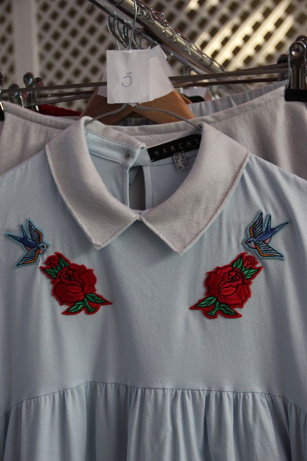 Платья-рубашки и блузы из натурального хлопка, открытые и легкие – отличное решение  для жарких летних дней. Дизайнеры традиционно использовали необычные методы обработки. Деокративные элементы в виде строчек, закрепок, в стиле бренда, лаконичны и скромны. Для яркого акцента  были разработаны самоклеющиеся шевроны на одежду с морскими и летними атрибутами. Расположение шевронов на одежде можно выбрать самостоятельно. Предложенные модели коллекции будут продаваться вместе с комплектом наклеек.