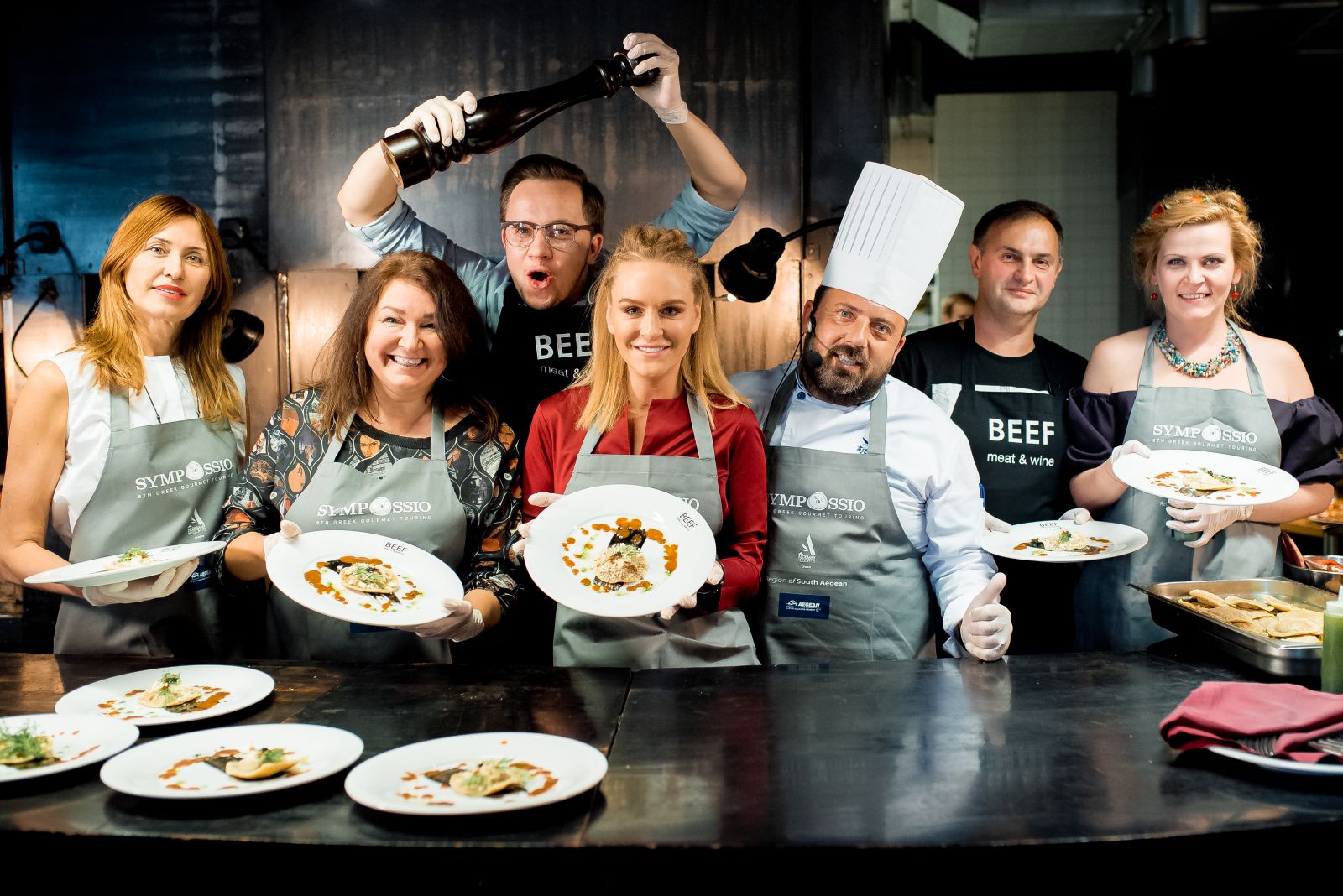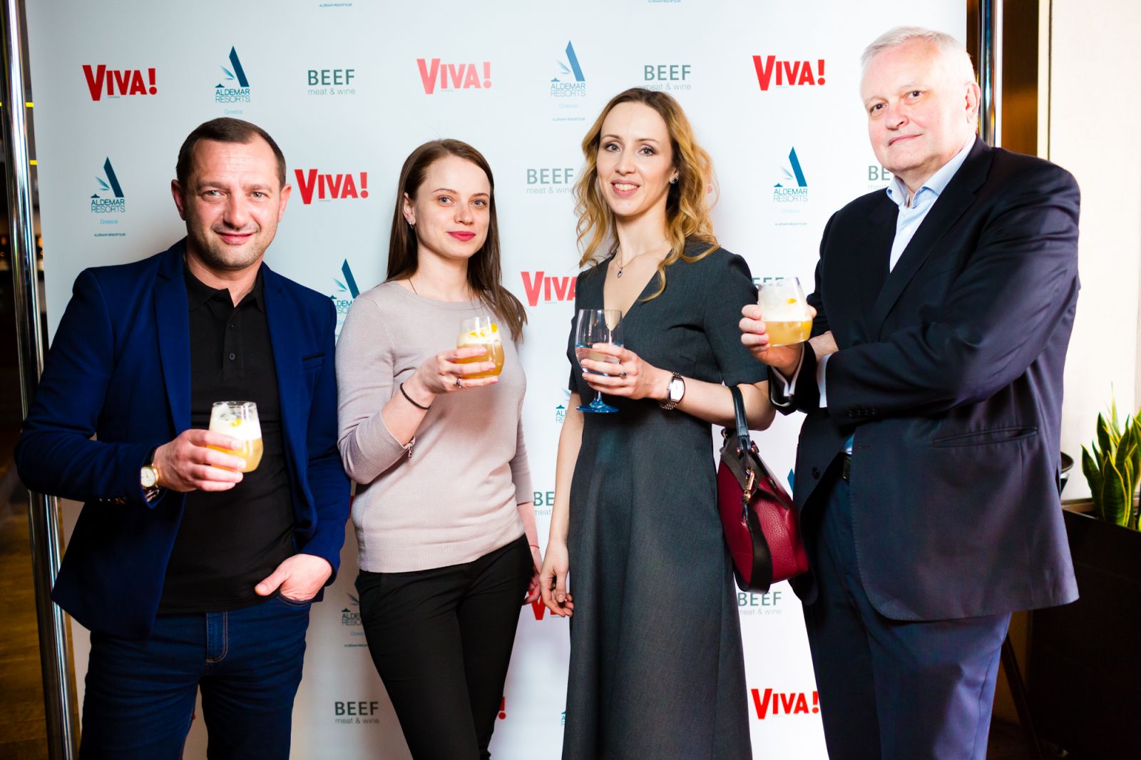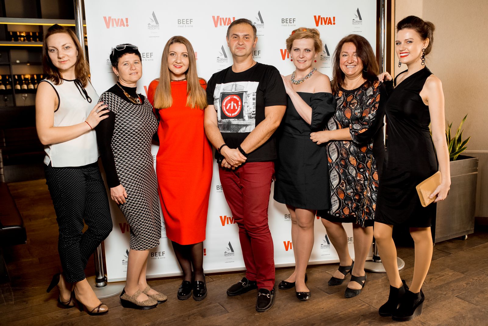 Слева направо: Надежда Снежко ("АВН"), Валентина Искра («Пан Терра»), Артем Гагарин, солистка группы "Он и она", Петрос Лампринидис (шеф-повар Aldemar Resorts), Андрей Гаврилюк ("ВААН ТУР"), Наталья Зубова ("Аполло тур")