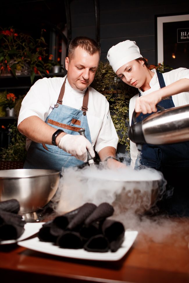 Шеф-повар Виктор Тимчишин предложил продегустировать гостям вечеринки меню одного дня, которое разработал специально для Черничной Party. Оно, конечно, основано на чернике, и каждая его позиция – интерпретации шефа на тему черники: черничный сорбет, паштет из куриной печени с черничным джемом, кейки с черникой, тосты с ростбифом и черникой, паштет из кролика в черничном желе, сыр с черникой, черничный чизкейк. А бармены разработали специально для мероприятия коктейли на основе черники, черничный пунш и лимонад.