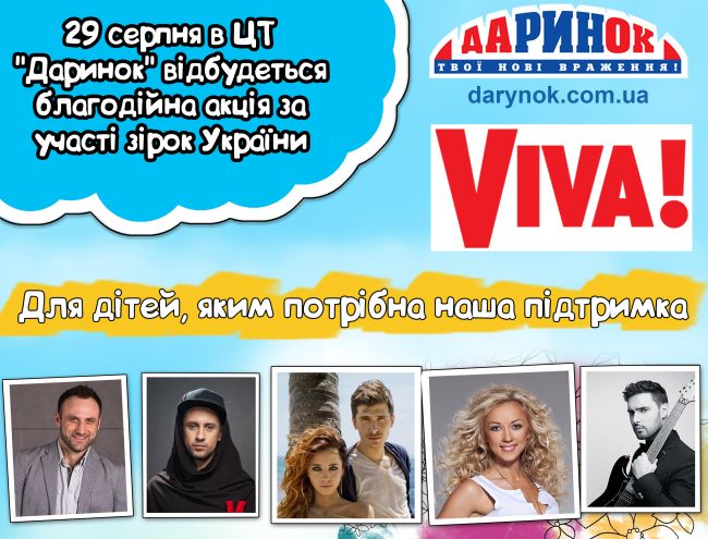 29 августа в Центре торговли «Дарынок» пройдет социально-благотворительная акция совместно с журналом Viva! и при участии звёзд украинского шоу-бизнеса.