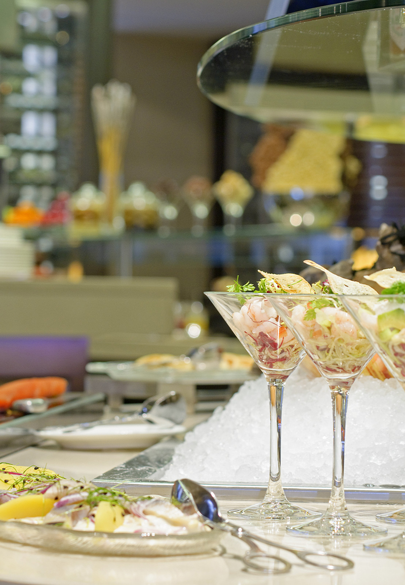 Огромное разнообразие морепродуктов, суши-бар, богатый выбор десертов и фруктов – это меню для настоящих гурманов по достоинству оценят все. Охлажденное просекко, итальянское красное и белое вина в безлимитном количестве помогут сделать настроение праздничным. А живая музыка окунет вас в атмосферу волшебства.
