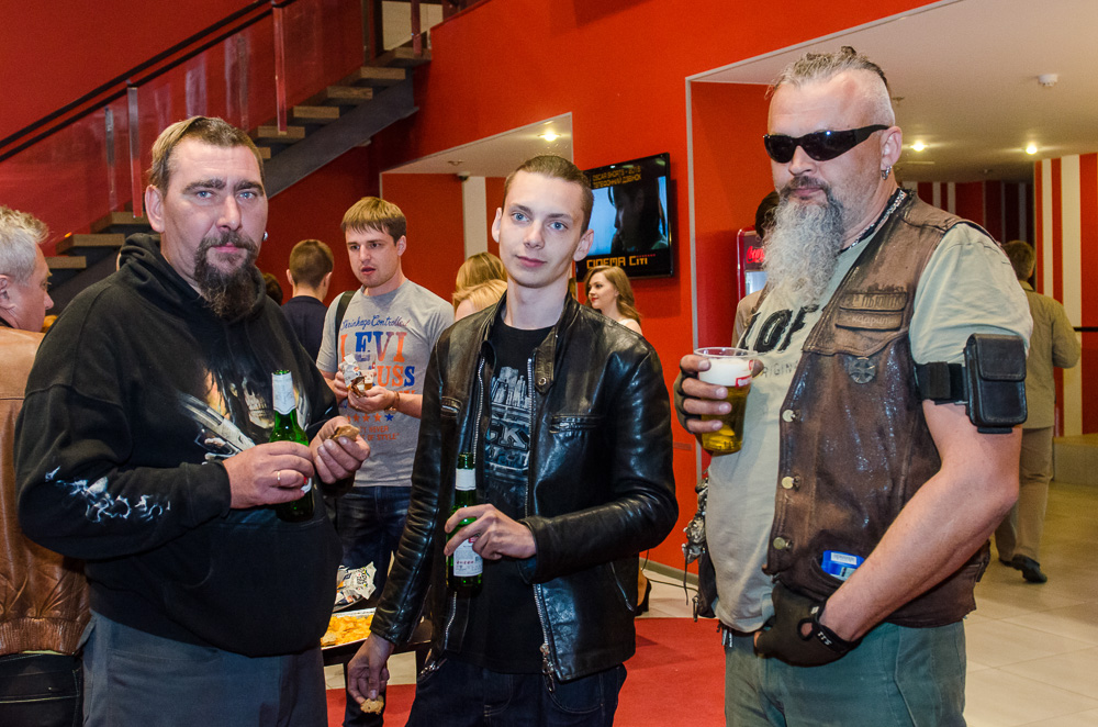 В атмосферу Дороги ярости, наполненной запахом бензина и пульсирующей ревом моторов, гости показа попадали прямо с порога. Окруженные не киношными, а настоящими байкерами в джинсах, «косухах», кожаных штанах и банданах, они могли стать пассажирами трайка, созданного байкером и актером Ашотом Арушановым, а также принять участие в тематической викторине и получить в подарок памятные сувениры.